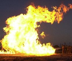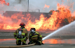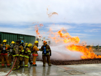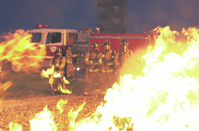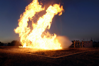 Fire fighters can battle a large fuel spill fire without air pollution or water and soil contamination. Intense flames can reach as high as 25 feet (7.6 m) on this simulator, while flame spread and height is under complete control of the instructor. An overturned roadway tanker trailer or railway car (customer supplied) can be positioned adjacent to the fire for added scenario realism.