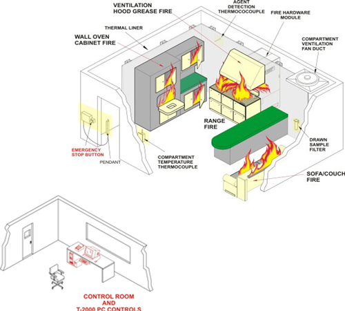 T-1000 & 2000 multi-fire burn room. Fires can be programmed to automatically spread behind a trainee's position or to another room.